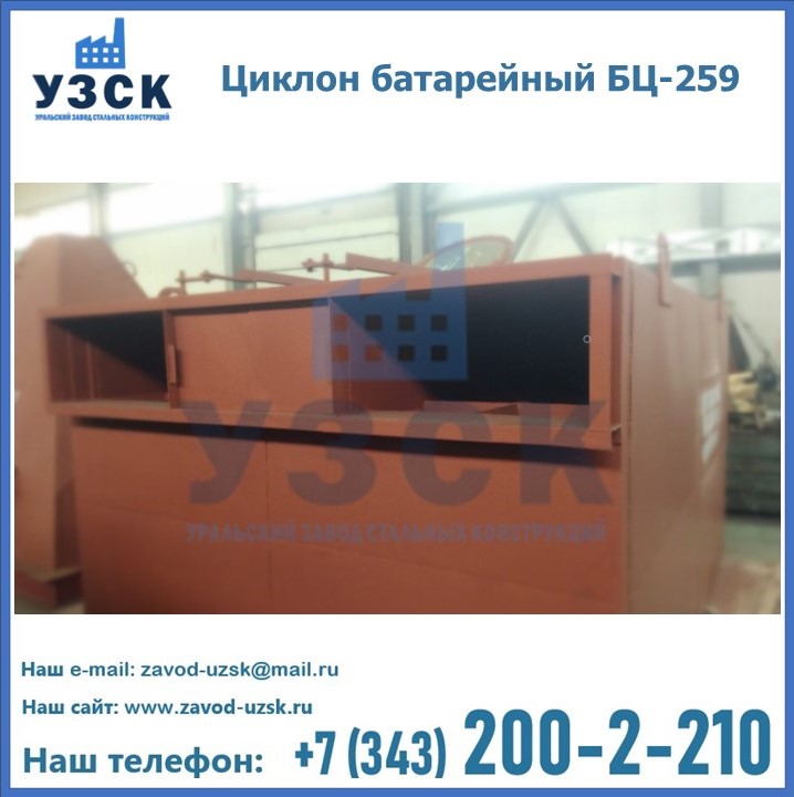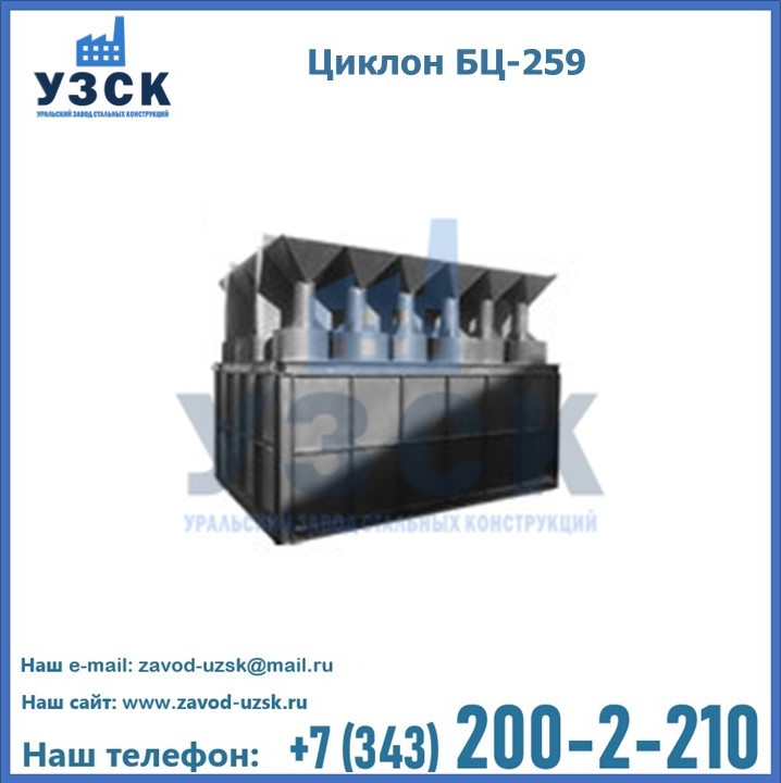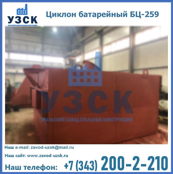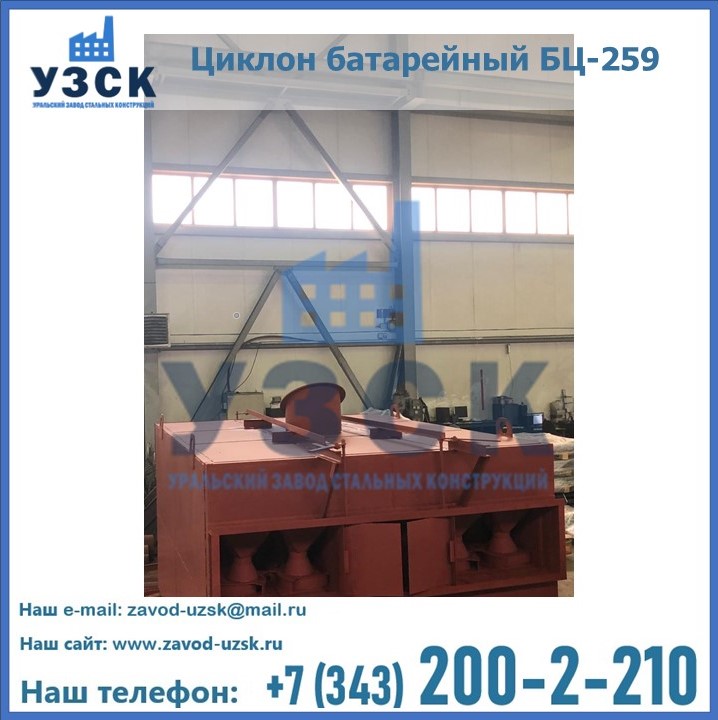 Приобрести качественное оборудование, в том числе, циклоны БЦ-259, можно в компании УЗСК в Бишкеке. Мы предлагаем долговечную и надежную продукцию по приемлемой цене. Заказать и купить циклоны или другие изделия высокого качества можно через сайт Уральского Завода Стальных Конструкций, или позвонив по указанному в разделе «Контакты» телефону.