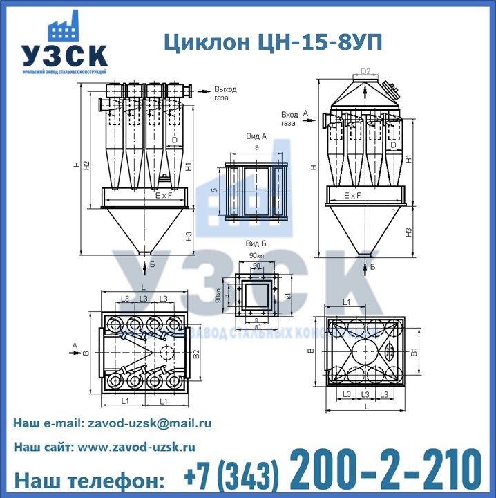 | ЦИКЛОН ЦН-15-500х8УП | 2150 | 1850 | 1188 | 340 | 1230 | 580 | 300 | 440 | 3032 |