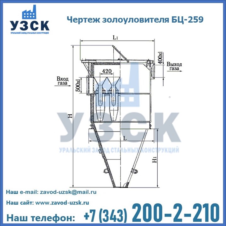 Если вы планируете купить то или иное оборудование, например, циклоны-золоуловители БЦ-259, то рекомендуем заказать данный товар на сайте УЗСК. Мы производим и реализуем продукцию высокого качества по приемлемой цене. Эксперты Уральского Завода Стальных Конструкций в Бишкеке проконсультируют вас по всем вопросам, помогут сделать выбор и оформить заказ без лишних временных затрат. Мы гарантируем соответствие нашей продукции всем требованиям ГОСТ и ТУ, а также износостойкость и высокую производительность предлагаемого оборудования. Если требуется изготовить циклон нестандартных размеров, то такой вариант выполнения заказа тоже предусмотрен, так как предприятие имеет собственные производственные площади и надежных поставщиков. На все поставляемое или производимое оборудование имеются чертежи и прочая техническая документация. Заказать и купить циклоны или прочее оборудование высокого качества и по доступной цене можно через наш сайт или по указанному в разделе «Контакты» телефону.