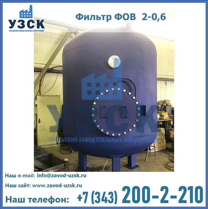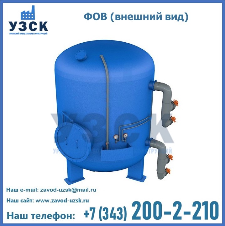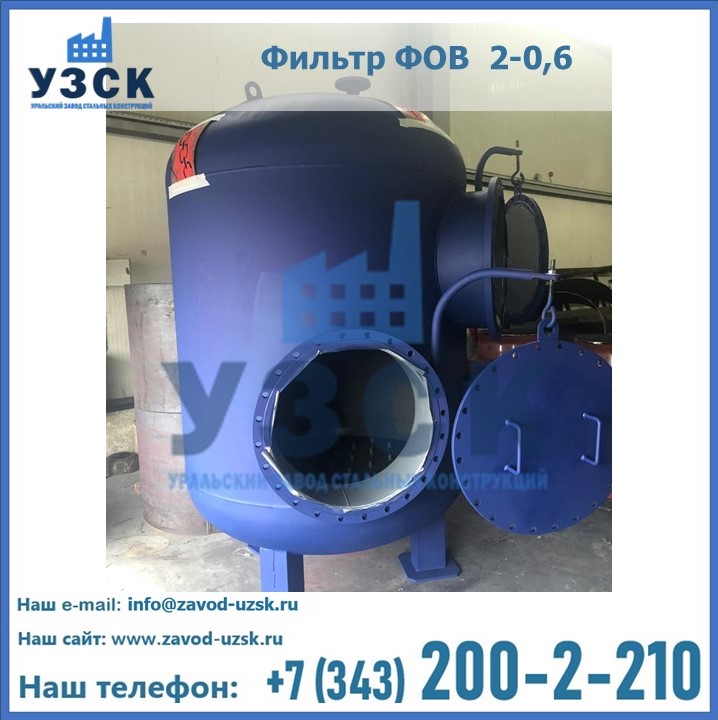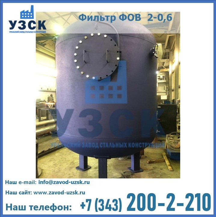 Удаление взвешенных веществ различного уровня дисперсности из рабочих жидкостей эффективно проводит фильтр осветлительный типа ФОВ (скорый или механический) — вертикально-цилиндрической формы установка, разработанная для систем водоподготовки различного класса. Оборудование представляет собой однокамерный агрегат для очистки воды рекомендованный для применения на станциях очистки стоков, в коммунальных котельных, на ТЭЦ, в промышленных отопительных системах и пр. Заказать производство ФОВ фильтров предлагает наш Уральский завод стальных конструкций в Бишкеке. У нас можно купить фильтрационное оборудование различного класса и типа, в том числе фильтры ФОВ из нержавеющей стали.