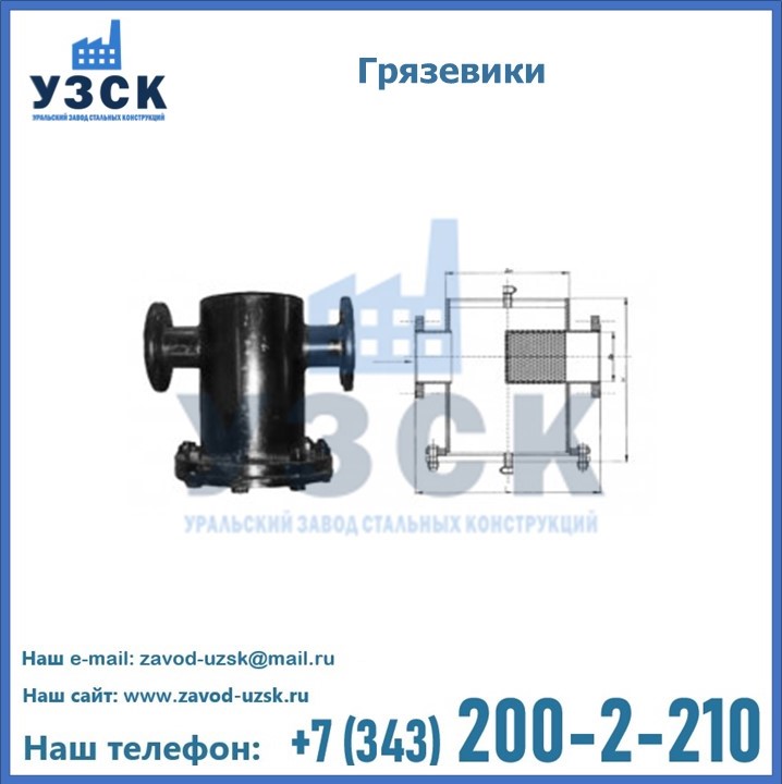 Уральский Завод Стальных Конструкций занимается производством и реализацией грязевиков в городе Бишкек, в наличии устройства горизонтального и вертикального типа, соответствующие всем требованиям и стандартам, в том числе условиям «Правил устройства и безопасной эксплуатации».